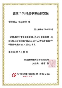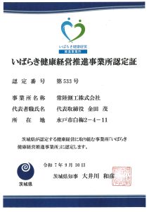 いばらき健康経営推進事業所 認定 |